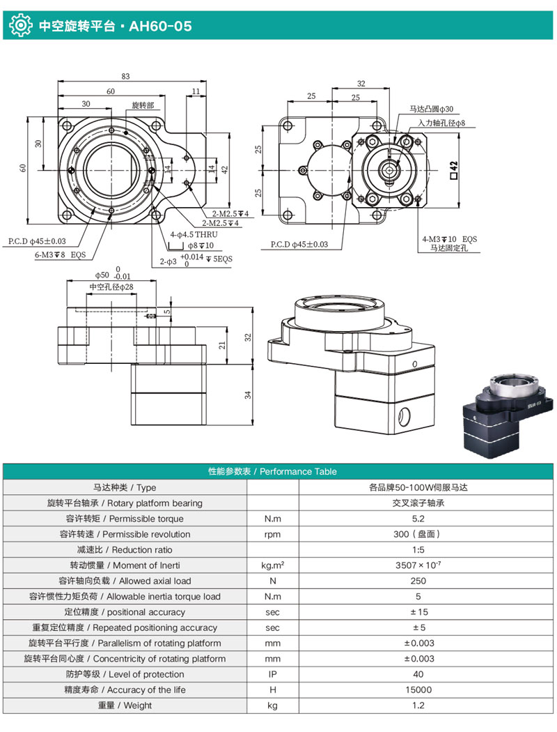 無齒隙,定位精度≤15sec,重復定位精度可達±5sec