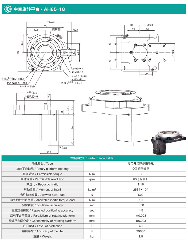 • 中空旋轉平臺AH85-18