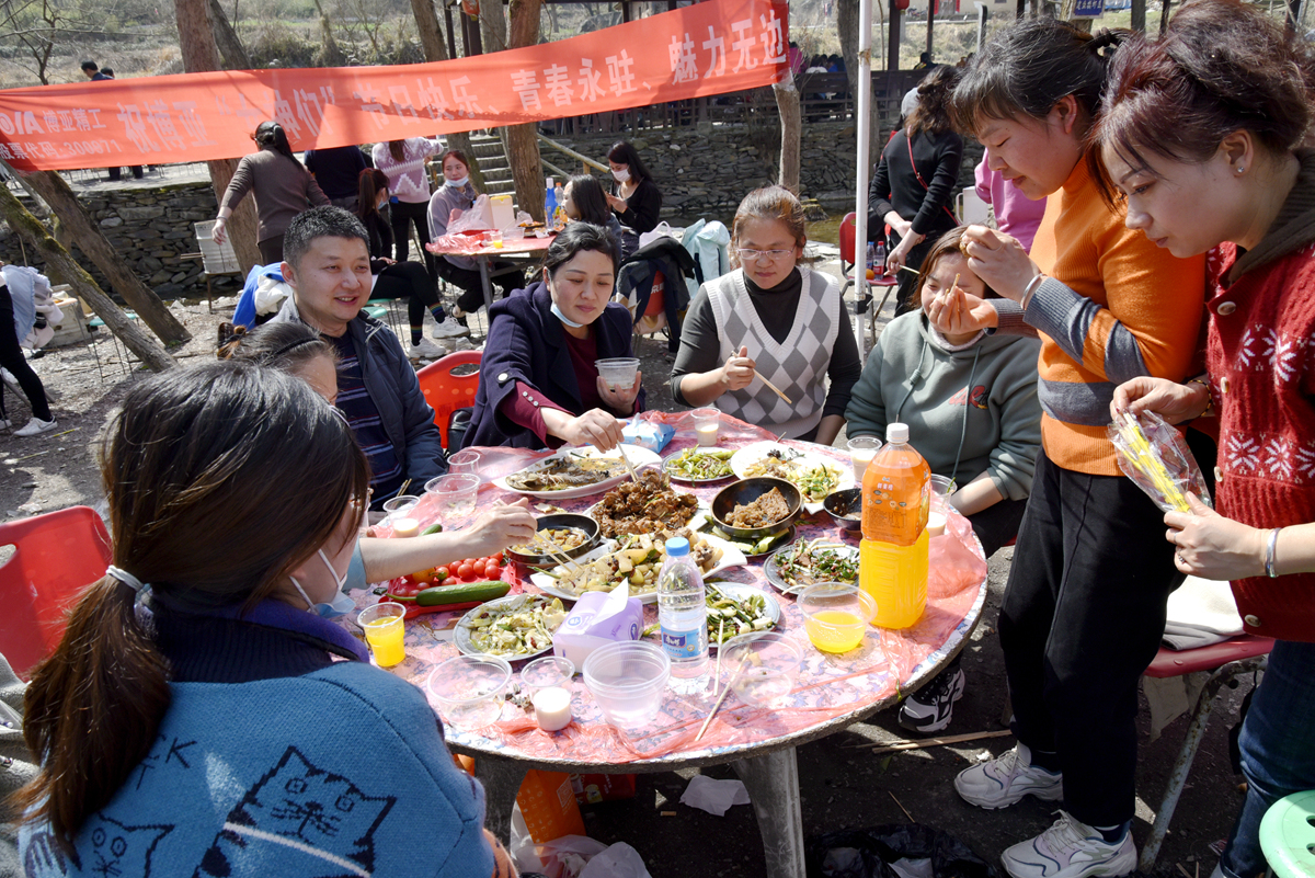 3月8日清早,在財務總監(jiān)、婦聯(lián)主任康曉莉的帶領下,公司66名女員工集合乘車,迎著初升的太陽從公司汽車工業(yè)園總部出發(fā)。一路上,女神們一邊歡歌笑語、一邊欣賞沿途美景,歷經(jīng)兩個小時到達目的地——南漳印象老家鄉(xiāng)村旅游度假區(qū)。下車后,大家編組整隊,跟隨景區(qū)導游的指引,先是沿途參觀景區(qū)民俗老屋、清淺小溪、碧綠梯田和原野春光等美景,隨后便開始自助野炊和燒烤活動。女同胞們按照事先編好的小組集合,在導游的安排輔助下,各小組成員分工合作、各負其責,取食材、拾柴火、生爐子、抓雞、殺魚,紛紛化身野炊大廚、燒烤大師親自烹制、烤制美食,充分展現(xiàn)了女員工們能力超群、善于協(xié)作、勤勞質樸的迷人魅力。大家其樂融融,一邊體驗制作美食的樂趣,一邊享受舌尖上的美味,個個臉上都洋溢著燦爛的笑容。野炊、燒烤活動后,女神們有的在叢林小憩、有的在小溪上體驗操作竹筏,好好享受午餐后的閑暇時光。之后,大家又前往蔬菜基地,體驗了一把蔬菜采摘的辛勞快樂。