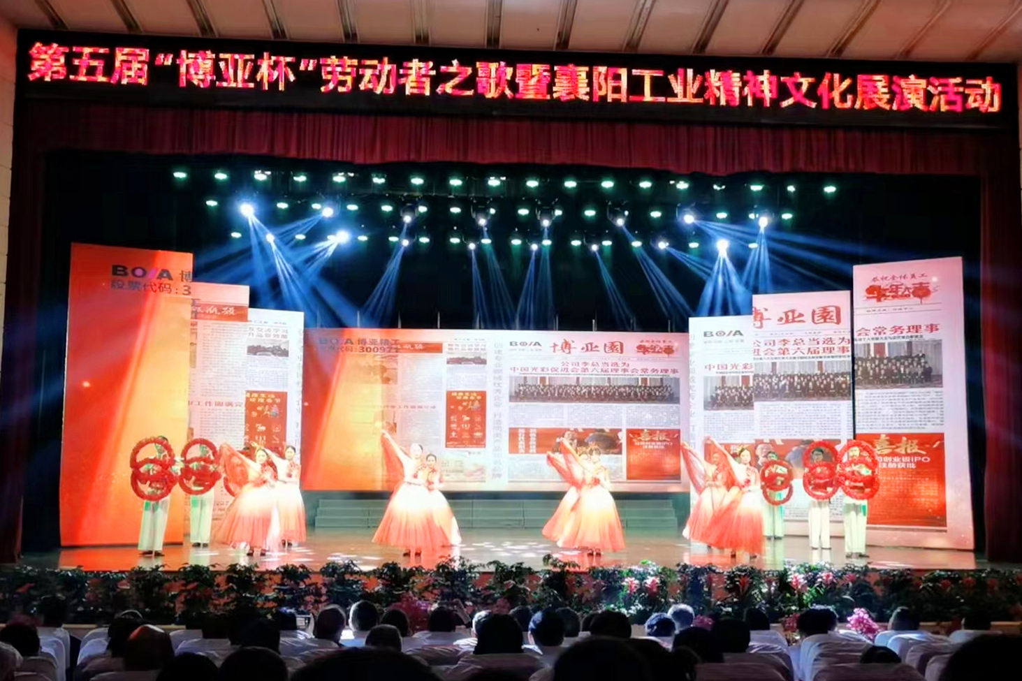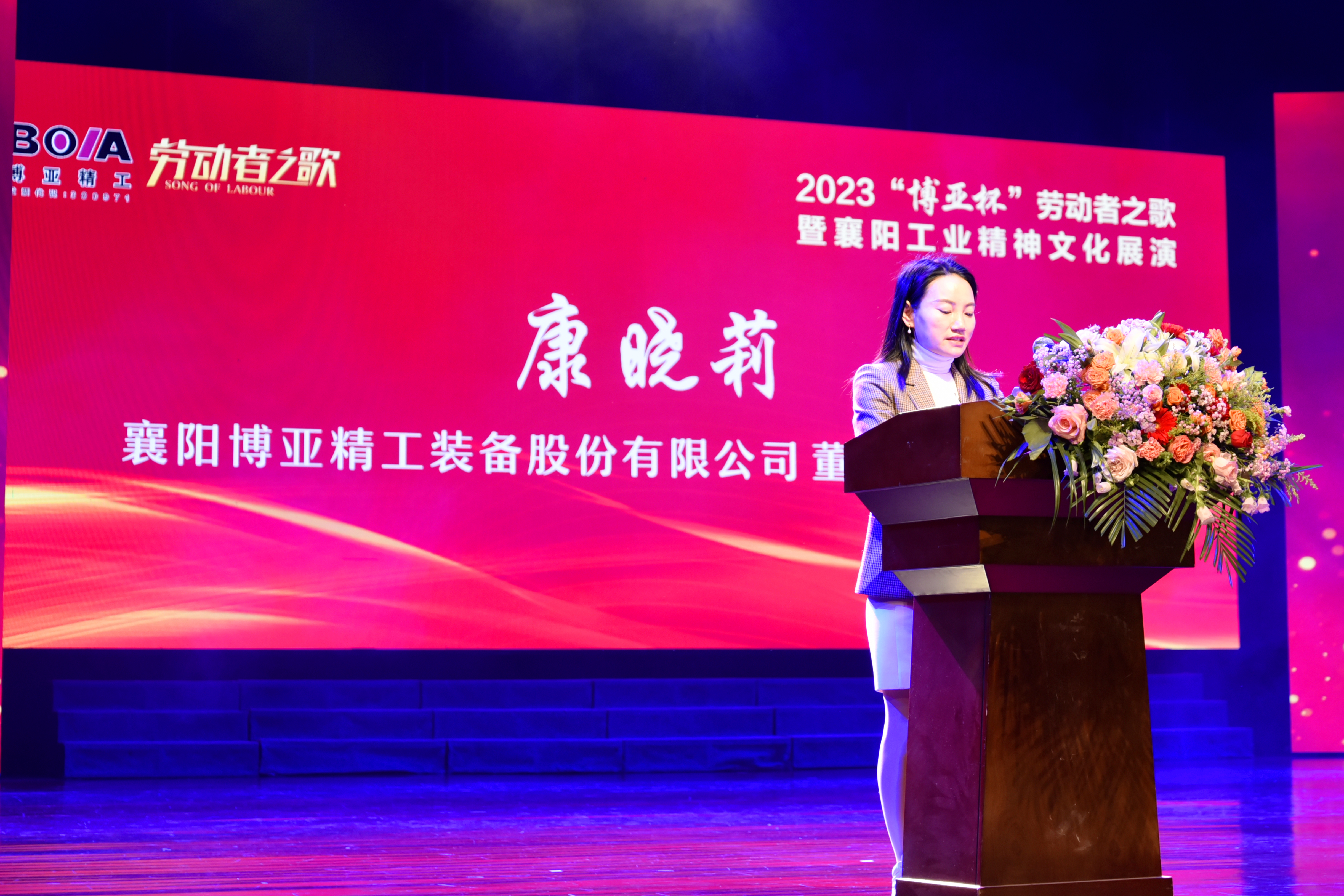 用汗水書寫歷史,用勞動(dòng)奏響贊歌。2023年4月27日下午,經(jīng)市委市政府批準(zhǔn),在市經(jīng)信局指導(dǎo)下,由公司冠名贊助舉辦的第五屆“博亞杯”勞動(dòng)者之歌暨襄陽工業(yè)精神文化展演活動(dòng),在襄陽劇院隆重舉行。襄陽市政府黨組成員張方晶,市人大常委會(huì)副主任王紹玲,市政府副秘書長潘峰,市委組織部、市委宣傳部、市委統(tǒng)戰(zhàn)部、市委人才辦、市經(jīng)信局、市人社局、市科技局、市總工會(huì)、市工商聯(lián)、市文明辦、襄陽日?qǐng)?bào)社、襄陽電視臺(tái)、市中小企業(yè)發(fā)展服務(wù)中心等市直有關(guān)部門和相關(guān)單位的領(lǐng)導(dǎo),襄陽市企聯(lián)、市各商協(xié)會(huì)和百強(qiáng)企業(yè)代表及嘉賓蒞臨出席活動(dòng)。公司董事、財(cái)務(wù)總監(jiān)康曉莉出席活動(dòng)并上臺(tái)致辭。
